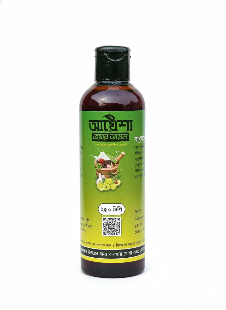 আয়েশা হেয়ার অয়েল প্রাকৃতিক ভেষজ ও পুষ্টিকর তেলের সমন্বয়ে তৈরি,